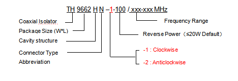 The reverse power of this figure is 100W, the specifications are shown in the table above, and the model is TG9662HN-X-100/XXX-XXXMHz
